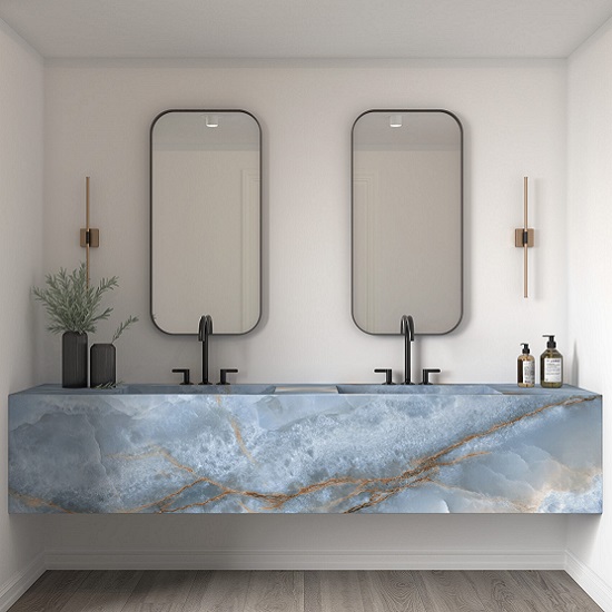 Nuestras encimeras porcelánicas Ascale Onice Blue ofrecen una estética superior y durabilidad a largo plazo.