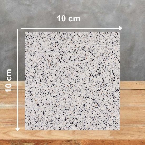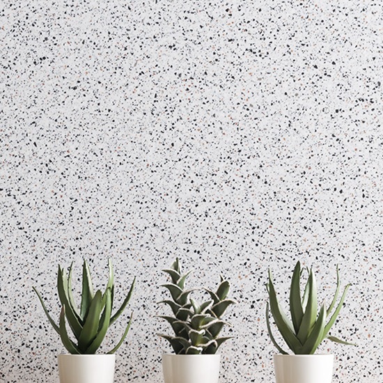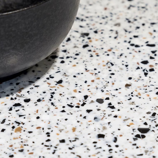 - Crea un aspecto elegante y sostenible, con partículas uniformes que cruzan toda la pieza, evocando terrazzo con diseño continuo.