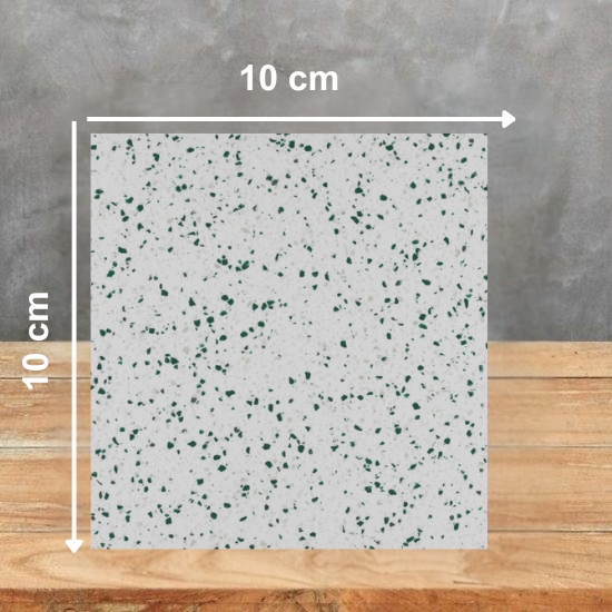 - Crea un aspecto cristalino y luminoso, con partículas uniformes que cruzan toda la pieza, evocando terrazzo con diseño continuo.
