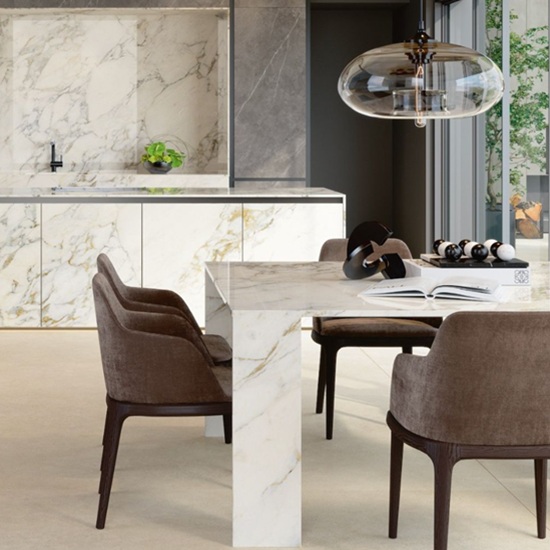 Laminam Arabescato Gold en hogares y espacios comerciales
