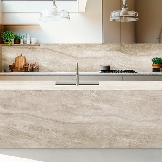 ¡Laminam Breccia Beige será el foco en tu próxima cocina costera!