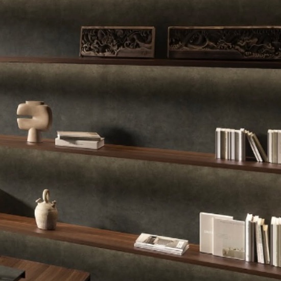 Crea un ambiente con carácter y fuerza, con matices intensos que fluyen naturalmente, evocando la esencia de grafito con un diseño contemporáneo para espacios cotidianos.