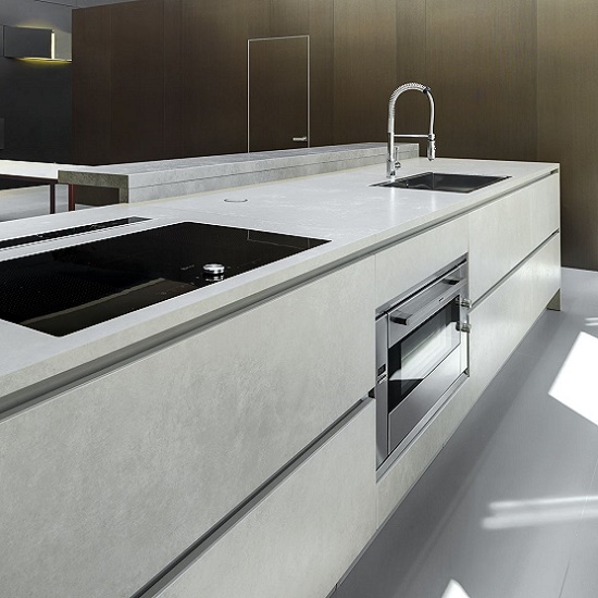 - Ideal para estilos neutros, uniendo suavidad y durabilidad, con superficies que aportan calidez táctil a tu cocina, simplificando el mantenimiento con higiene superior.