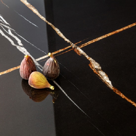 - Ideal para diseños contrastantes, fusionando estética marmórea y durabilidad, con superficies que aportan dramatismo visual a tu cocina, facilitando higiene diaria sin esfuerzo.