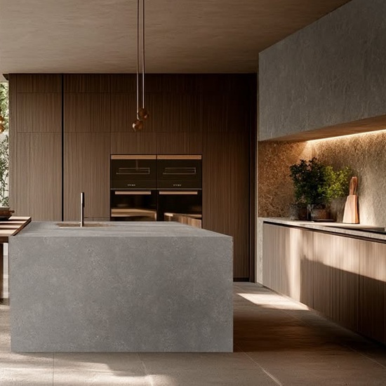 - En islas de cocina residenciales: Tono gris crea claridad natural para comidas diarias, ideal en hogares donde resiste manchas visibles.