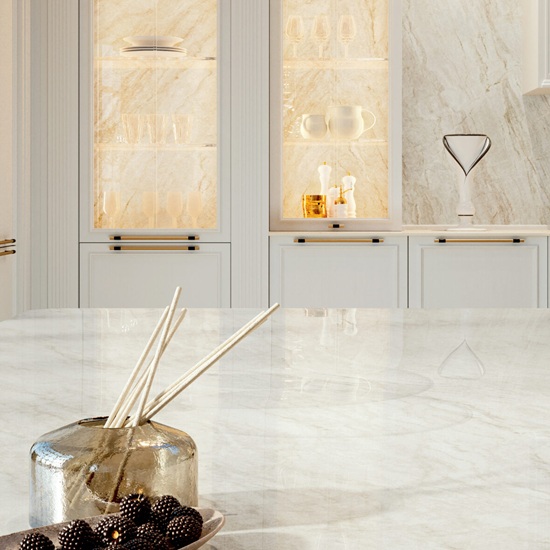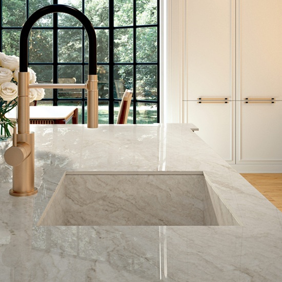 ¡Laminam Taj Mahal será el foco de tu espacio en tu próxima cocina costera!