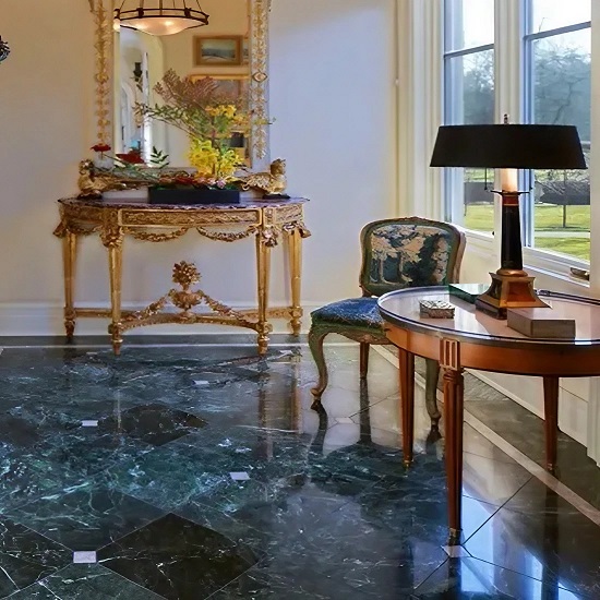 Verde Alpi es un mármol italiano oscuro, fuerte y bello.
