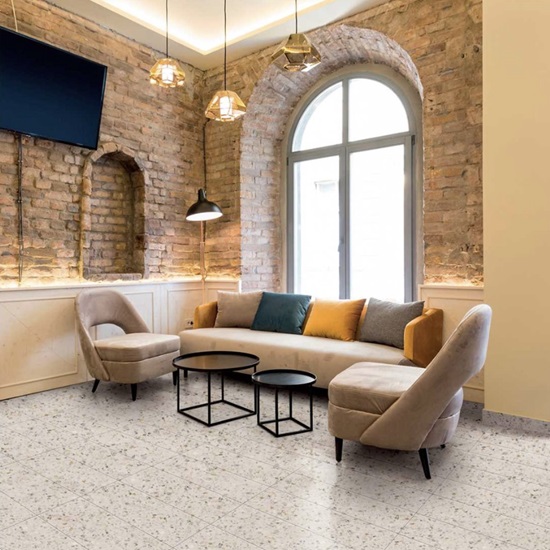 Numerosos optan por terrazo Maffei en entornos vibrantes, donde sus detalles moteados se alían con higiene óptima y solidez, potenciando el atractivo en pisos, cafeterías modernas, hoteles boutique y oficinas.