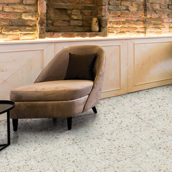 - Sus terminaciones aportan el estilo de terrazo veneciano si buscas distinción en ambientes naturales, minimalistas o rústicos contemporáneos.