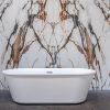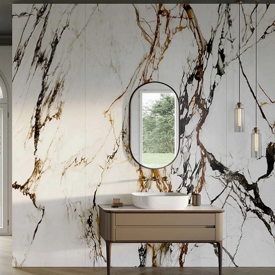 - En baños spa-like: Asóciala a grifos dorados, soporta aceites y vapor manteniendo vetas impecables en rutinas relajantes.