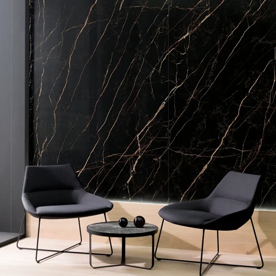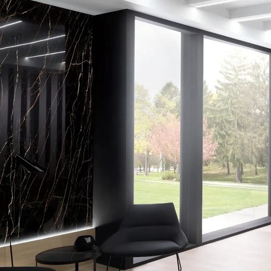 Descargar folleto Descargar pautas de mantenimientoDescubre Xtone Port Laurent, la encimera sinterizada inspirada en mármol negro marroquí con base oscura y vetas finas en marfil y oro, ideal para cocinas sofisticadas.
