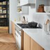 Para encimeras, los paneles Silestone Calacatta Gold de 3 cm pueden ser también una parte esencial del diseño. Gracias a su estética más robusta, el cuarzo blanco con vetas grises y toques dorados destacará sobre el resto de los revestimientos y permitiéndote producir un espacio verdaderamente personal.